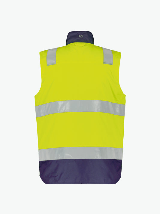 Bilbao Hogezichtbaarheidsbodywarmer Fluogeel/Marineblauw